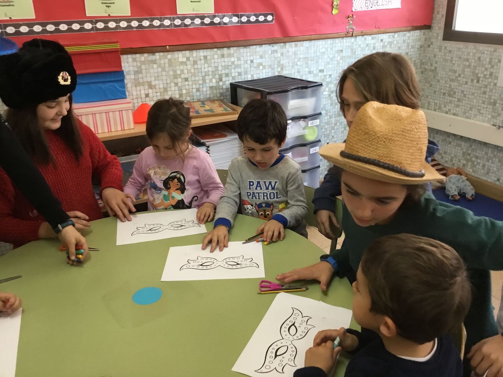 padrins a la nostra classe, ens van ajudar a fer un antifaç molt maco, ens ho