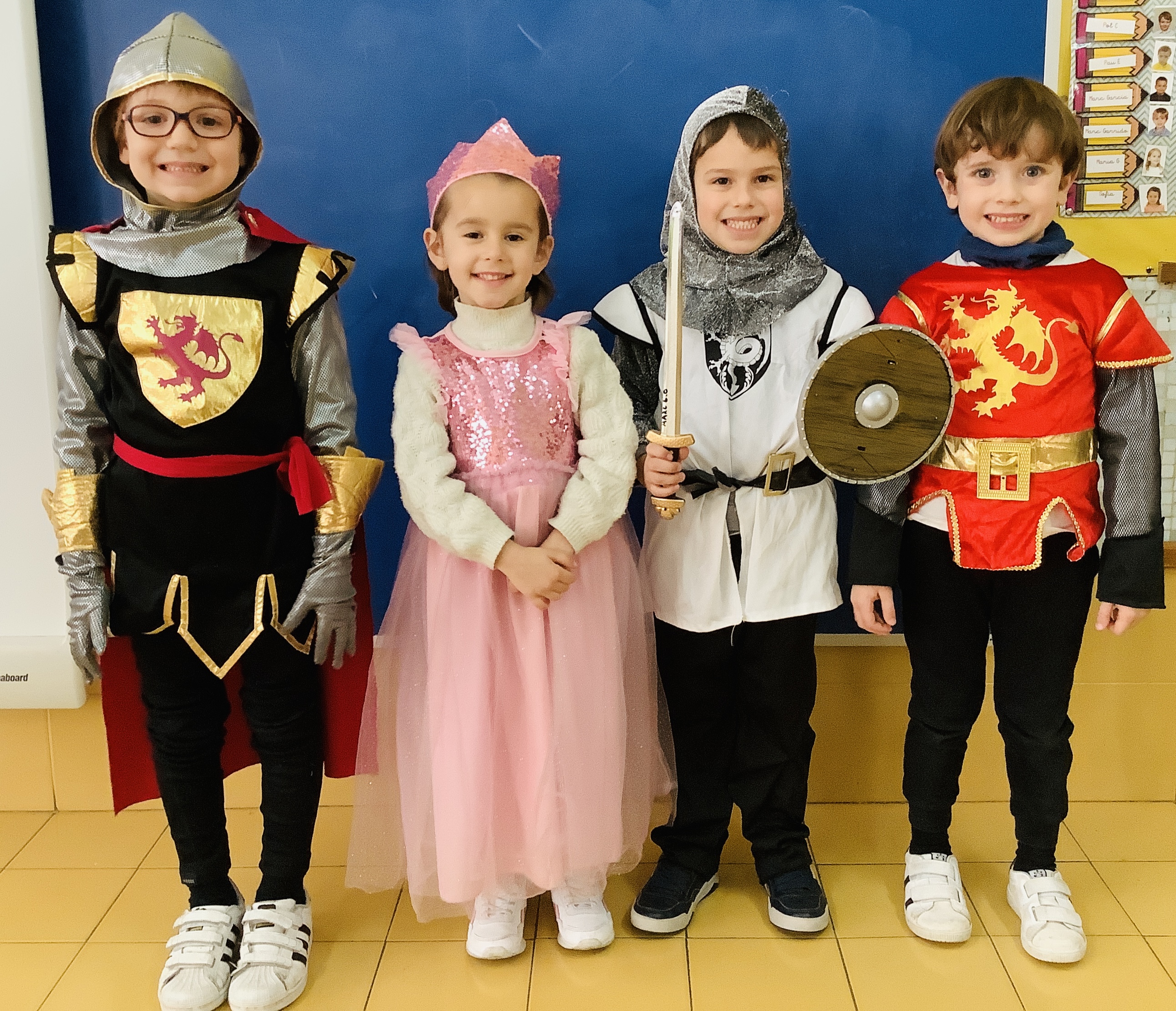 I avui dimecres hem vingut ben guapos i guapes disfressats de casa de princeses, cavallers i algun artesà, per fer el tancament del projecte "Que bufó".